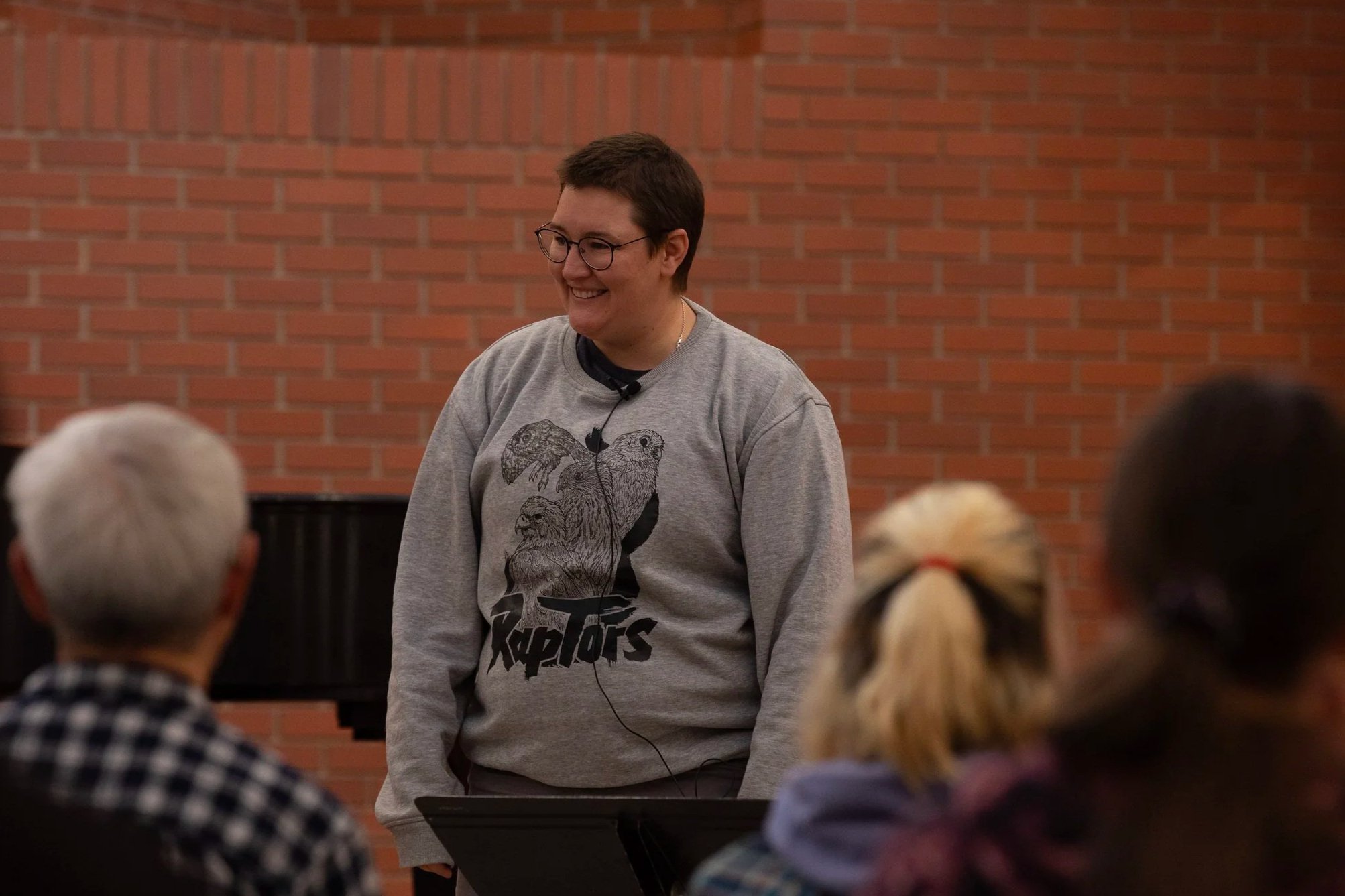 Katy Harmer (she/her) is a queer and genderqueer choral conductor, singer, and educator based in Winnipeg.